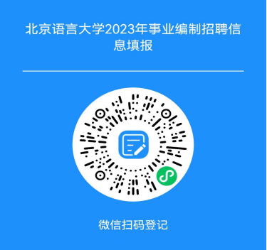 2.应聘人员向该招聘单位投递简历时,务必抄送人事处rsk3@blcu.edu.cn,邮件主题格式为:“应聘单位+应聘岗位(教学或科研或辅导员)+姓名+学历或工作经历(硕士或博士或博士后)+专业(请填写毕业证上的专业全称)+毕业学校,且同一应聘人员限报三个用人单位。发送邮件后,请务必扫码填写个人信息小程序(最后上传图片栏,请上传证件照)。简历投递及个人信息小程序填报截止日期为2023年5月1日。 |